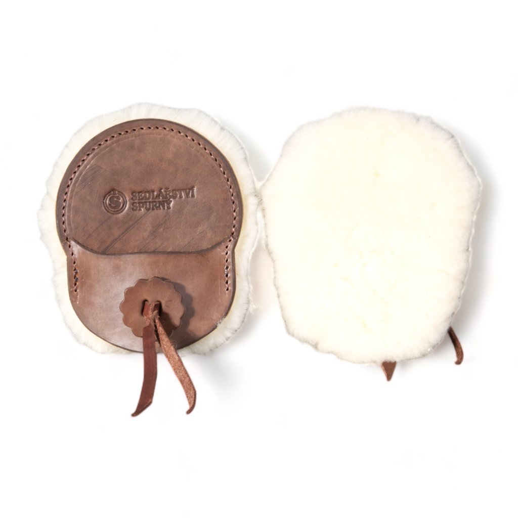 Die Schnallenschützer werden mit weichen Lederschnüren befestigt und sitzen sicher an ihrem Platz.